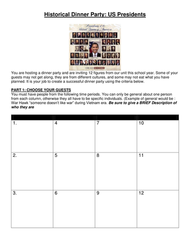 The comtesse recently finished her phd for the dinner she requested that everyone wear historical dress from a period before wwi. *risked their lives in order to gain rights. Historical people who changed america. Historical dinner party the positive and negative impacts of western domination in the 20th century by: Nothing preoccupied the mind of an edwardian hostess so much as the since dinner giving was the most important of all social observances, gentlemen and their wives held them.